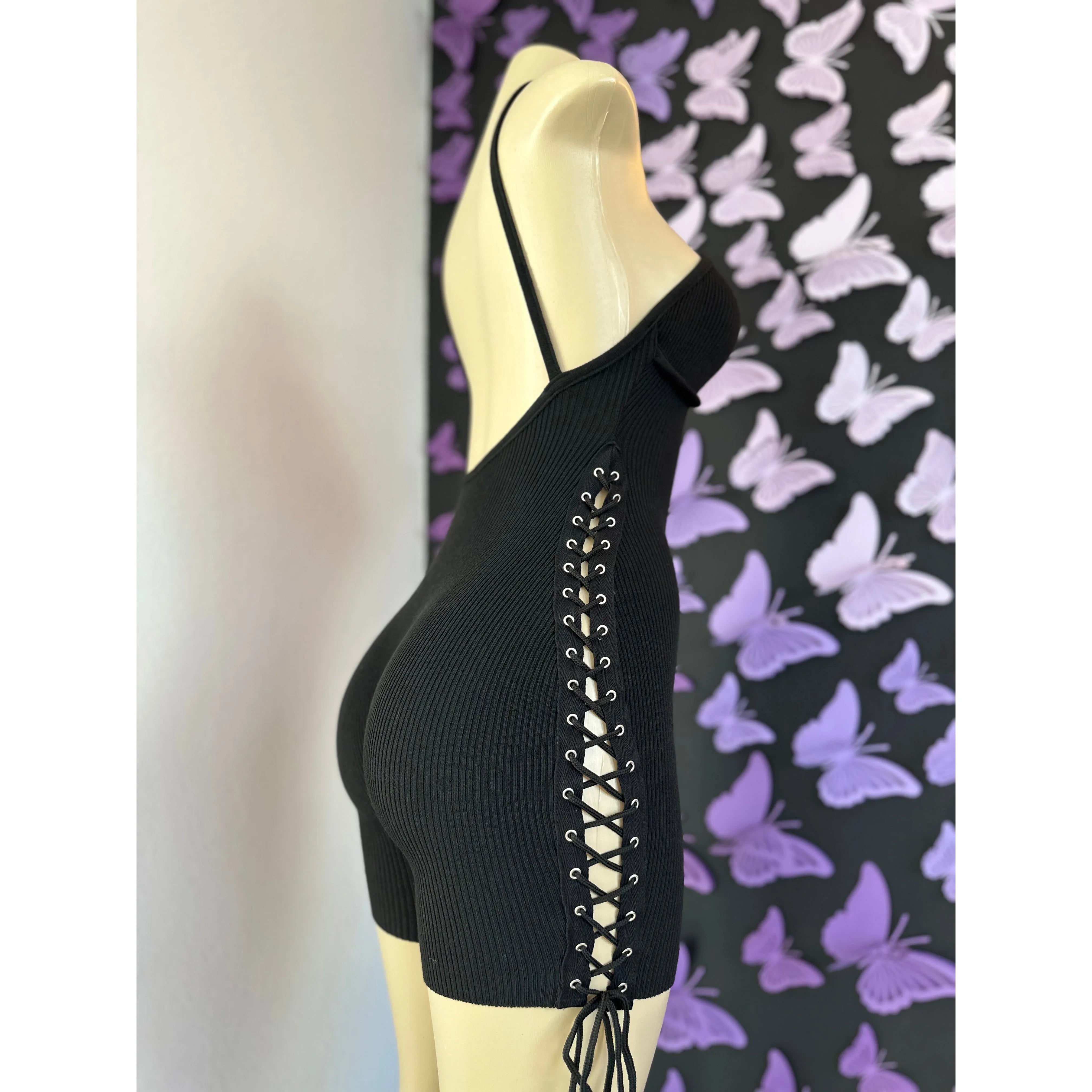 - One side lace up short romper.