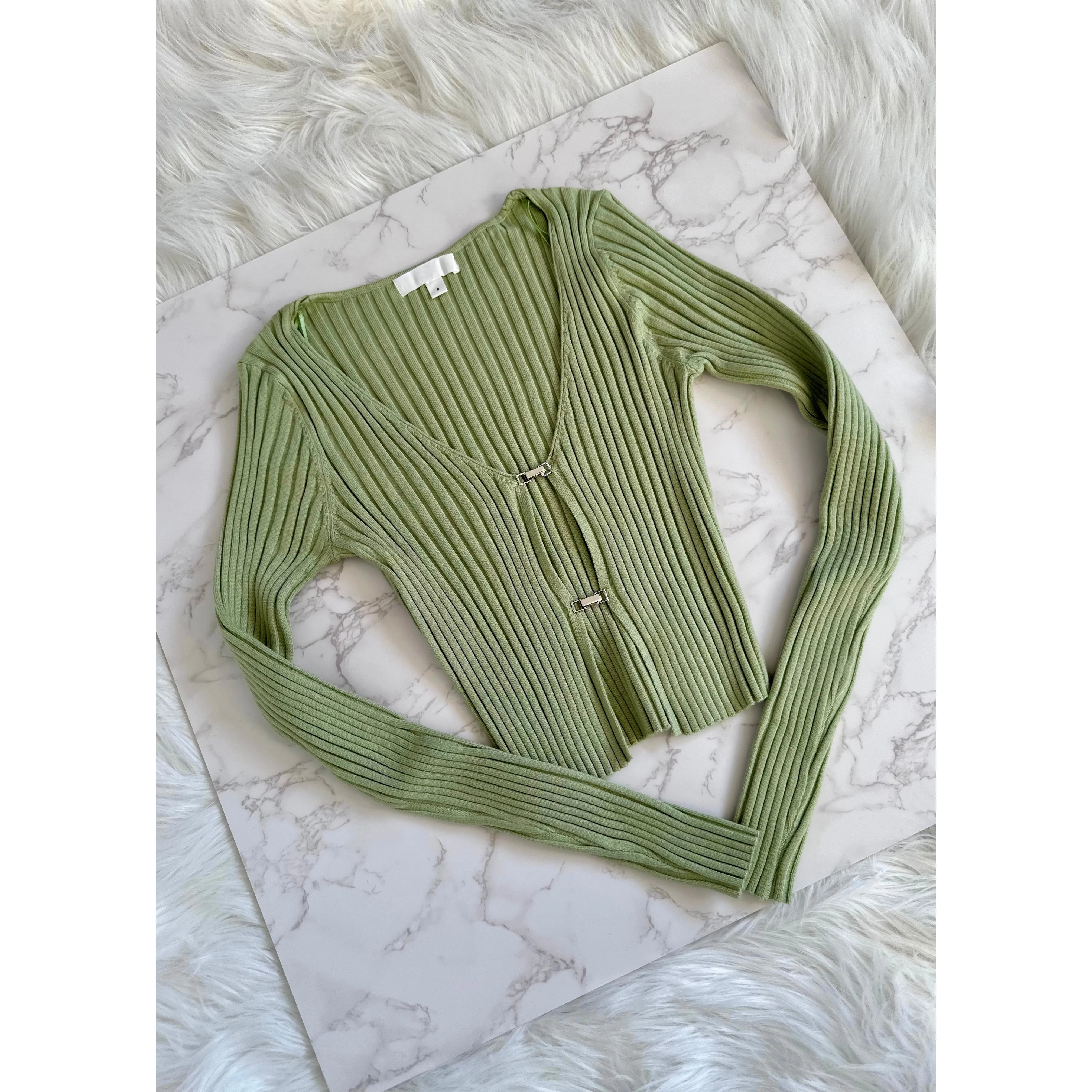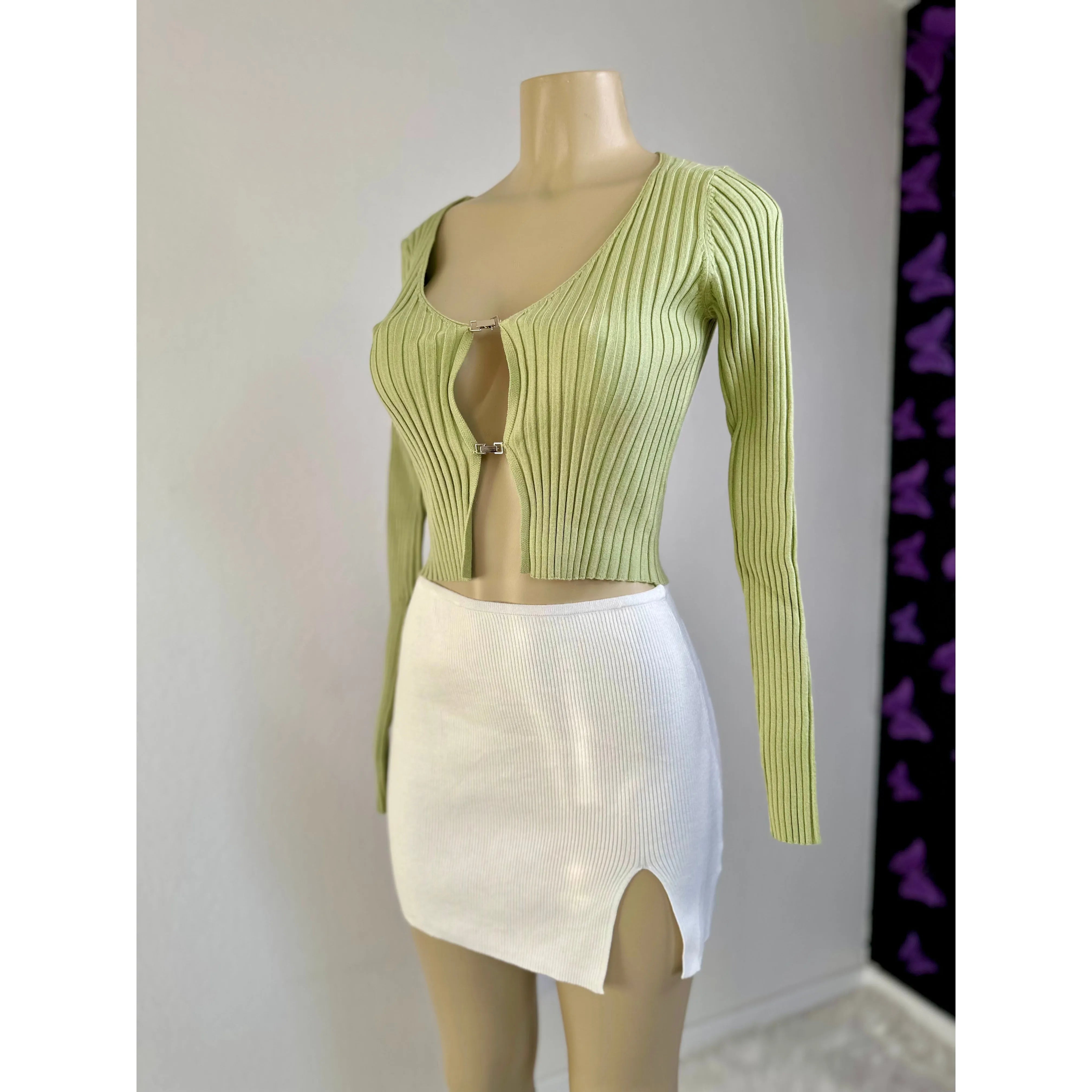 Green Long Sleeve Crop Top