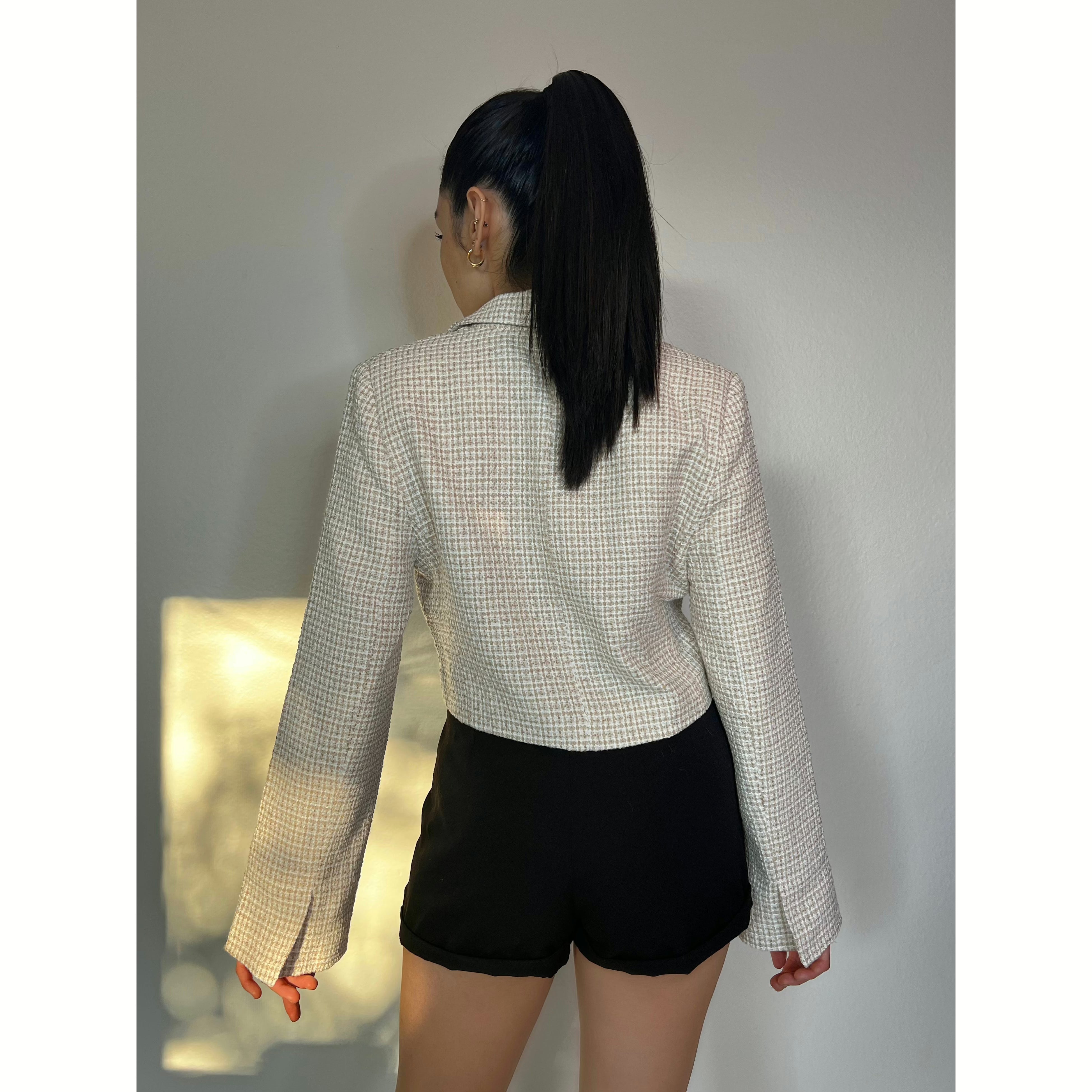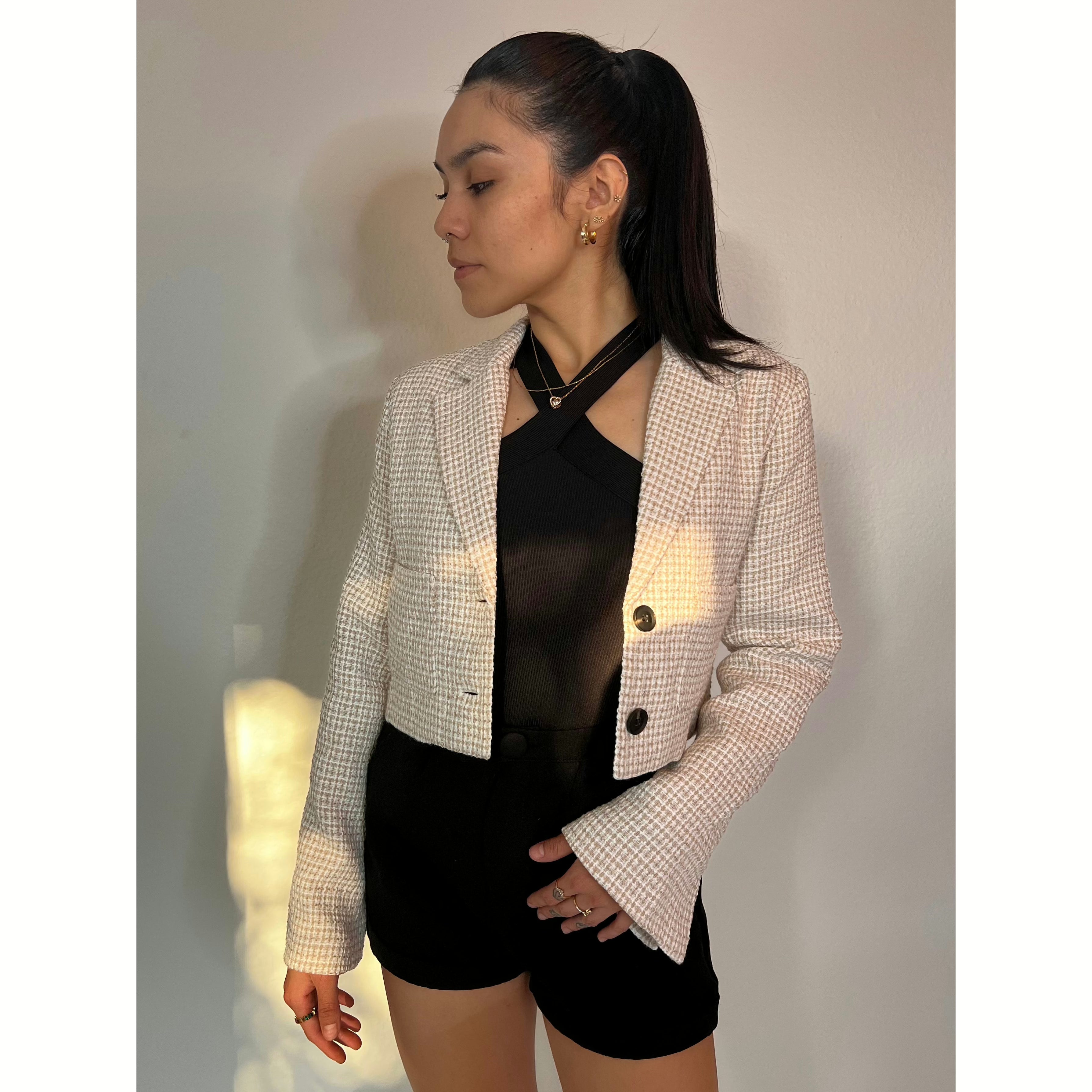 Plaid Cropped Tweed Blazer